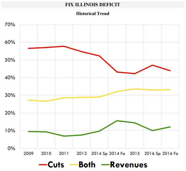 Closer to home, our friends at the Paul Simon Public Policy Institute conduct annual opinion polls of registered voters in Illinois. The Springfield budget stalemate lingers as the summer wind blows in. A resolution from our elected representatives has been elusive, perhaps because their constituents are deeply divided themselves. A plurality believes that the budget should be balanced through spending cuts alone, although a growing share of the public calls for a mix of spending cuts and tax increases. Only a small share of the electorate believes that balance should be achieved solely through revenue increases.